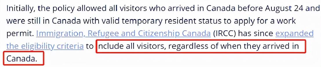 起初,该政策要求所有想申请工签的游客必须在2020年8月26日之前就已入境加拿大,但IRCC现在直接删掉了这个限制——不管你什么时候来的,只要你能工作,有人要你,一律可从旅游签转工签。