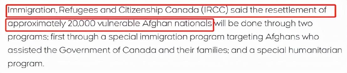 (比如在CTV这篇报道里,IRCC就说有2万名阿富汗难民会被安置在加拿大)