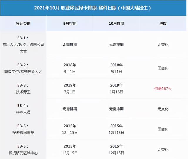 详情点击文章:来啦!2021年10月最新绿卡排期发布!这个类别倒退167天