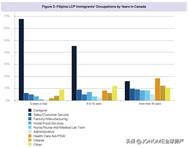 CERC用菲律宾从事看护岗位的移民举例,近7成菲律宾人通过护工职业来到加拿大工作。