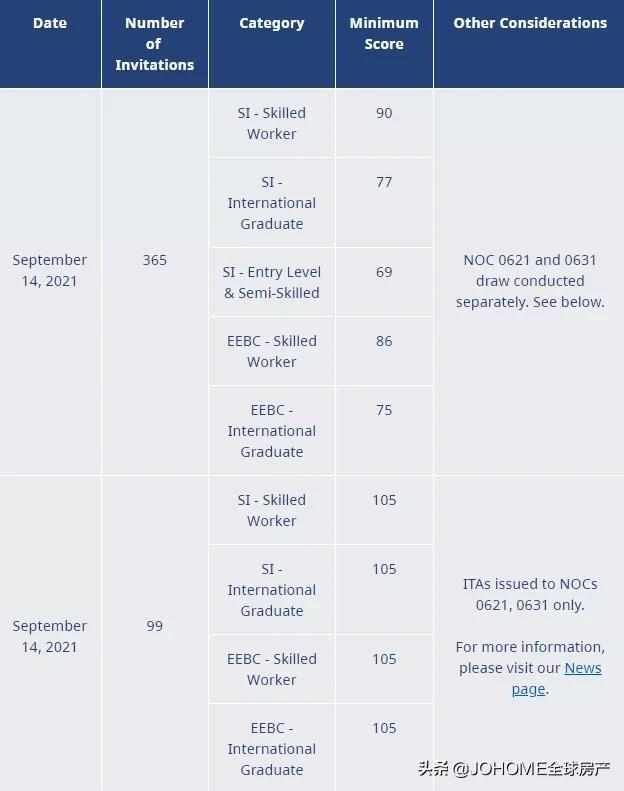 目前,入门级和半低技术类别申请人只需在BCPNP CRS评分系统中达到69分即可获邀。