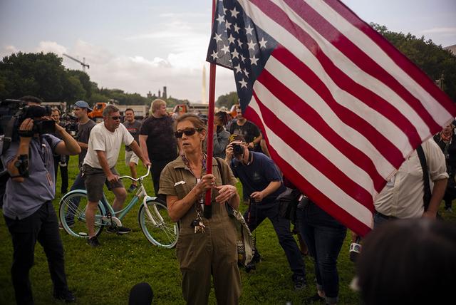当地时间2021年9月18日,美国华盛顿特区,国会大厦附近聚集民众接受采访。