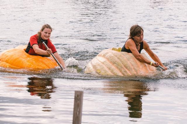 当地时间2021年9月19日,人们在德国梅谢尼希参加趣味“南瓜船”比赛。