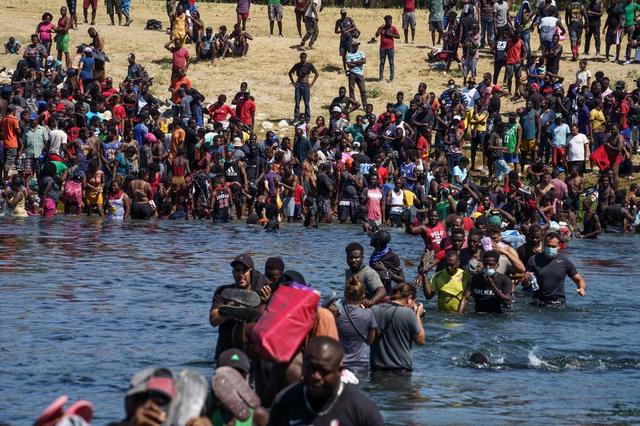 近期,大批非法移民在连接美国得克萨斯州边境小城德尔里奥与墨西哥科阿韦拉州阿库尼亚城的“德尔里奥国际桥”一带“安营扎寨”,其中许多人是海地人。他们不时到阿库尼亚城购买食物和生活必需品,再蹚河返回宿营地。