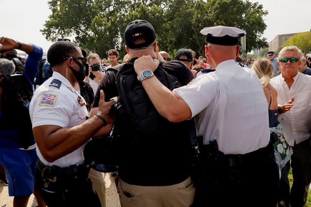 当地时间2021年9月18日,美国华盛顿特区,数百人聚集在美国国会大厦附近,举行示威集会。美国国会警察在社交媒体上说,当天共有四人被捕。