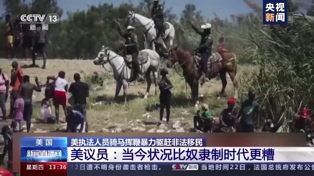 有美国议员指出,美国边境执法人员骑马挥动长索驱逐移民的画面令人想起美国历史上白人虐待黑人奴隶的场景,甚至比奴隶制时代更糟。