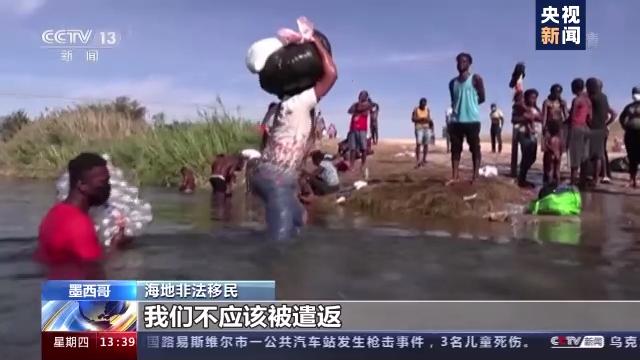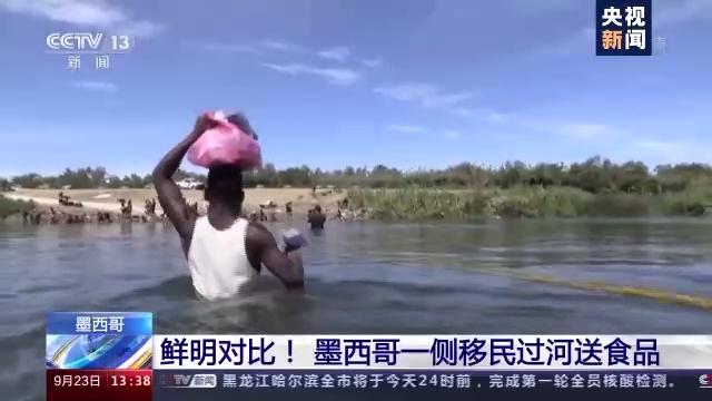 大量来自海地的非法移民聚集在美国和墨西哥边境。在美国一侧,移民遭美国执法人员粗暴对待。在墨西哥一侧则有不同的场景。22日,在看到美国一侧的同胞缺衣少食甚至忍饥挨饿之后,墨西哥一侧的海地非法移民自发为他们送去了食品和其他用品。