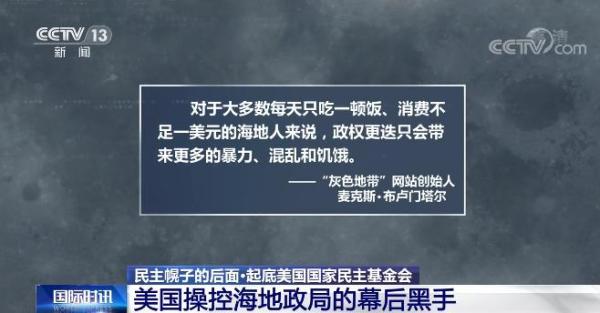 “灰色地带”网站创始人 麦克斯·布卢门塔尔:运作美国国家民主基金会的人有着新保守主义思维,他们认为美国应该是世界上唯一的霸权和主导力量,不应受到任何其他政权的挑战,所以它主要针对的是社会主义政府,不惧美国影响力的独立政府,以及所谓的美国竞争对手,如俄罗斯和中国。
