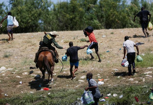 美边境执法人员骑马扬鞭驱赶海地移民