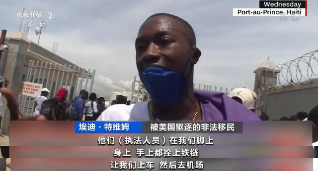 从19日开始,美国政府对美墨边境的非法移民进行大规模驱逐,不到一周,已有近万名非法移民被迫离开了边境地区。一名被强制驱离的海地移民称,他们“被拴着铁链”遣返回国。
