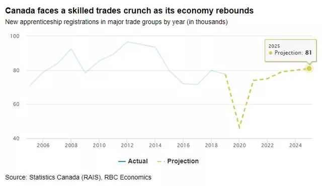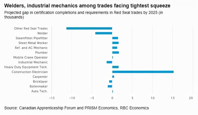 近日,加拿大皇家银行就加拿大境内的技工短缺问题发布了最新的研究报告。报告指出,如果雇主、政策制定者们再不做出改变,技工短缺问题将在未来十年内持续恶化。