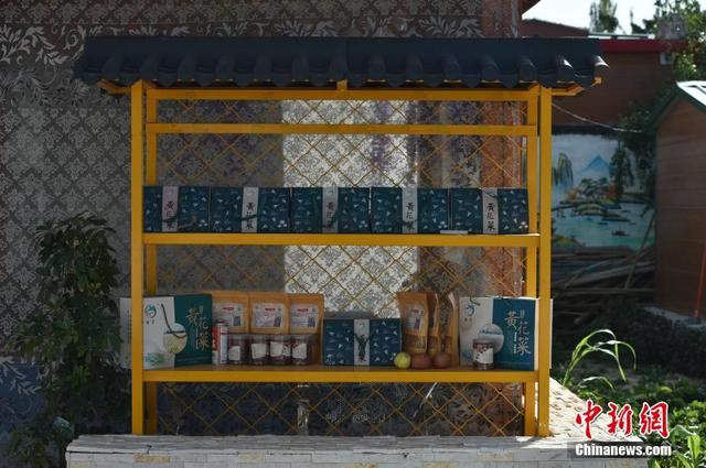 图为智慧民宿院子售卖当地农产品的货物架。中新网记者 李骏 摄