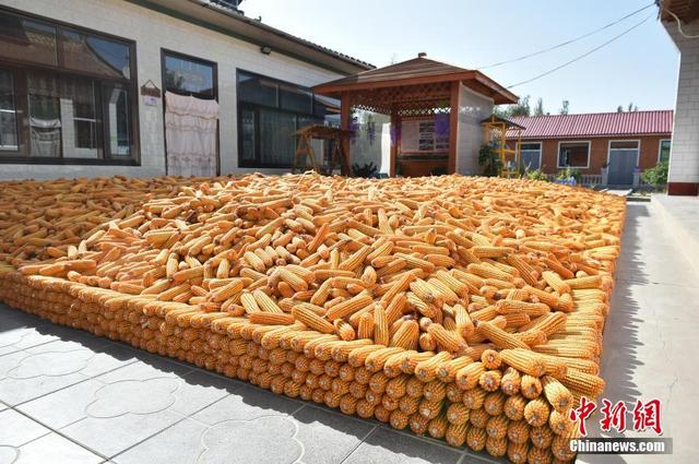 图为智慧民宿院落里晾晒着丰收的玉米。中新网记者 李骏 摄
