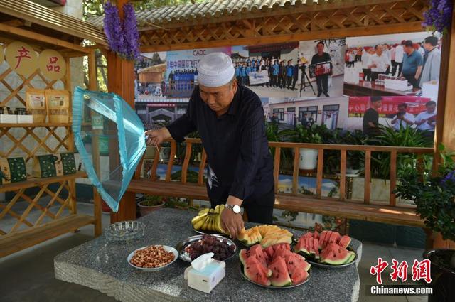 图为智慧民宿院落里摆放着招待客人的瓜果。中新网记者 李骏 摄