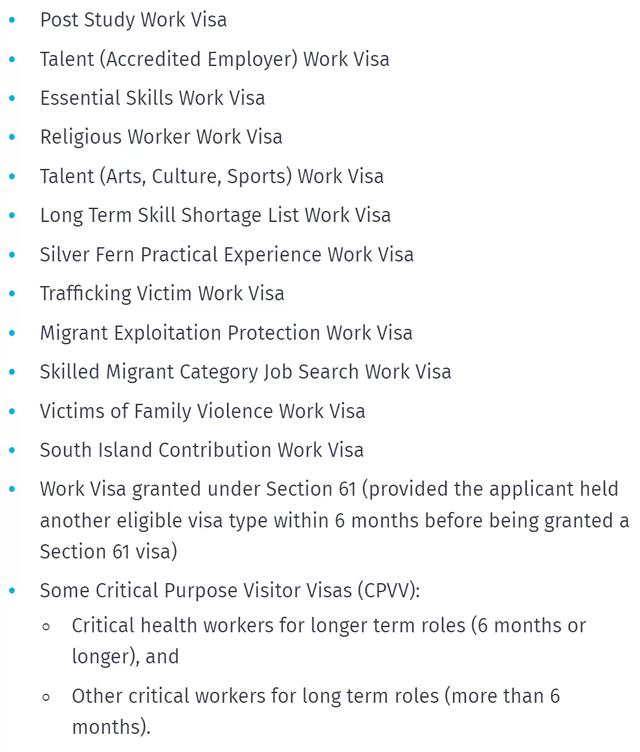 主申请人必须在2021年9月29日已经在新西兰境内,且持有或已经申请并被批准下列工签之一: