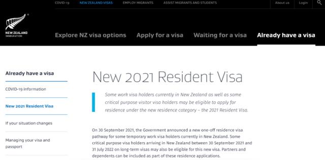 现在,新西兰移民局官网正式官宣了!New 2021 Resident Visa!