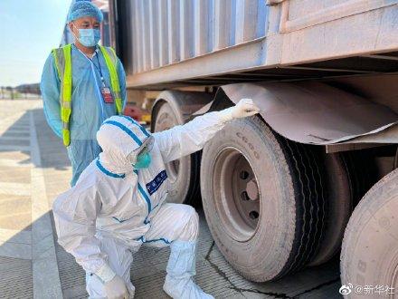 10月1日9时,广西东兴口岸北仑河二桥准点开关,东兴出入境边防检查站执勤民警穿戴好防护装备后开门放行等待出境的货车。新冠肺炎疫情发生以来,东兴出入境边防检查站将一线警力分成若干个小单元,采取每个小单元“7天连续勤务”“7天酒店隔离”“7天居家隔离”的工作模式。民警穿着防护服一天要工作12个小时,里面的衣服一直都是湿的,两个手掌也被汗水泡得又白又皱。(记者黄浩铭)