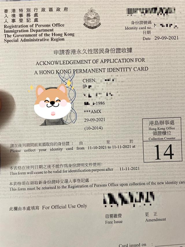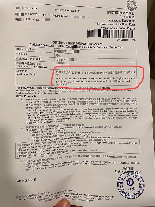 2021.9.29核实完香港永居身份