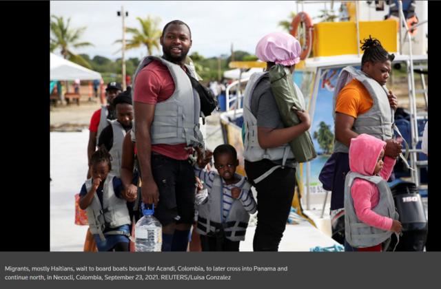 据路透社2日报道,当地居民称,成千上万的海地移民涌入哥伦比亚海滨小镇Necocli,寻求向北前往美国的交通工具,这迫使当地居民失去了住房,因为房东更喜欢能用美元付款的海地移民。