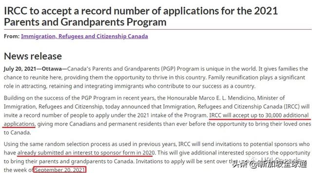 加拿大移民局在今年7月20日宣布,父母团聚移民(PGP)将于9月20日的两周内抽签,被邀请的申请人将有60天的递交材料时间。本次使用和2021年初父母团聚移民完全相同,直接从2020年已入池的申请人中抽签邀请,不接受新入池的申请。