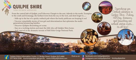 据《昆士兰邮报》报道,距离布里斯班以西一千公里的 Quilpie Shire,以开采澳宝和恐龙骨而闻名,是一个人口仅为八百人的小城镇。近年来,由于旅游业的兴起,以及大量的人涌入内陆地区享受悠闲的生活方式,该地区正在蓬勃发展。
