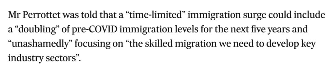 “一项类似于澳大利亚二战后的雄心勃勃的国家移民计划将确保澳大利亚能够从技能、投资和人口增长中受益,”Perrottet 提议道。