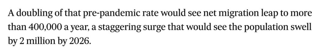 如果要比疫情前的比率翻一番,预计未来每年净移民人数将跃升至40多万人,这是一个惊人的激增,