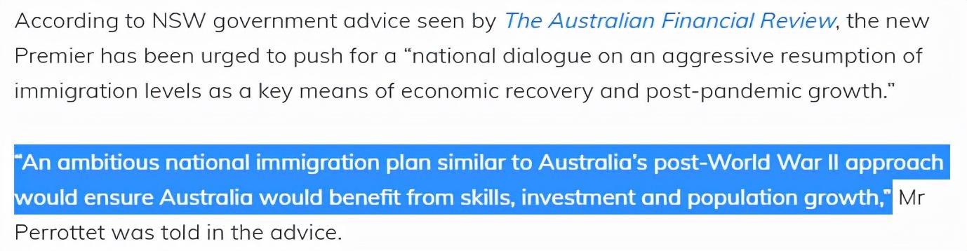 州政府内部敦促Perrottet推动,“关于积极恢复移民水平的全国性对话,作为经济复苏和疫情后恢复增长的关键手段”
