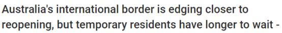 澳洲国境将于11月重新开放,澳籍公民和PR可以自由出入境,但开放后放宽的限制却并不适用于临时签证持有人和非公民
