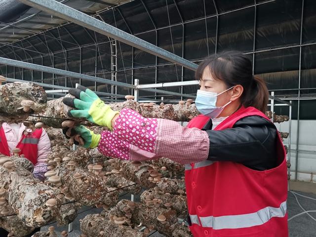 在公司采摘蘑菇的周边群众