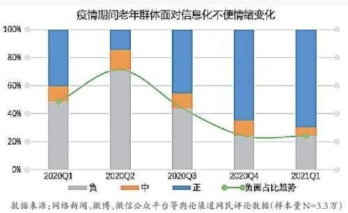 在数字时代,老年人如何融入数字生活,成为影响“银发族”生活质量的重要问题。为全面掌握当前我国老年人的数字生活特点,了解其对网络适老化改造的切实需求,课题组于2021年6月至8月针对北京、黑龙江、江苏、安徽、四川、宁夏等地老年人进行访谈,对全国30个省区市老年人进行网络调查,对2019年1月至2021年6月间互联网各个渠道的网民评论数据展开分析。同时,将调研结果与2017年课题组同类调研进行比照,由此得出本报告,为老年人数字生活及信息能力精准画像,对我国更好地开展网络适老化建设提出政策建议。
