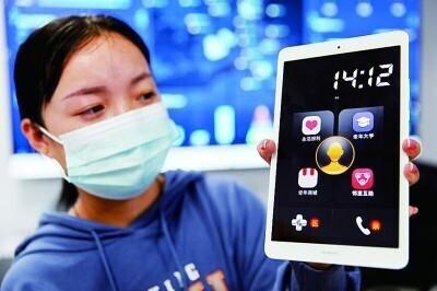 社区居家养老服务中心工作人员展示居家养老服务的相关程序。新华社发