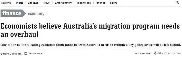 疫情爆发以来,澳洲人口增长缓慢,政府关闭国门后移民无法入境,而移民是近几十年来推动澳洲就业、经济发展的主要动力。