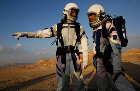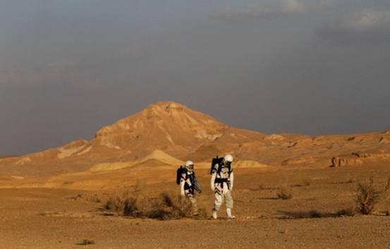根据报道,近日,一个由5名男性科学家和1名女性科学家组成的科研小组,来到以色列内盖夫沙漠拉蒙陨石坑附近,未来的1个月时间里,他们将会在这里模拟火星生活,而且是在完全身穿太空服的情况下。