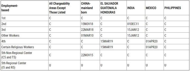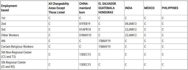 1)EB-1类别显示“C”,无排期。