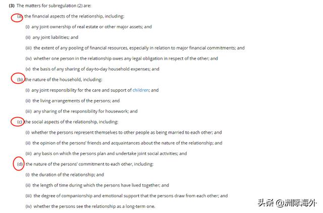 注意:移民法Section 5CB (a) and (b) 定义的de facto relationship为配偶双方有且仅跟对方承诺一起生活,且这段关系是真实和一直持续的,且需要双方住在一起(有一段时间分居可以,但不可以是永分居)。