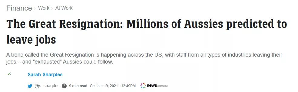 这两天,美国出现的“大辞职”风潮引发了全球关注。而同样的场景,很快也将在澳洲上演...