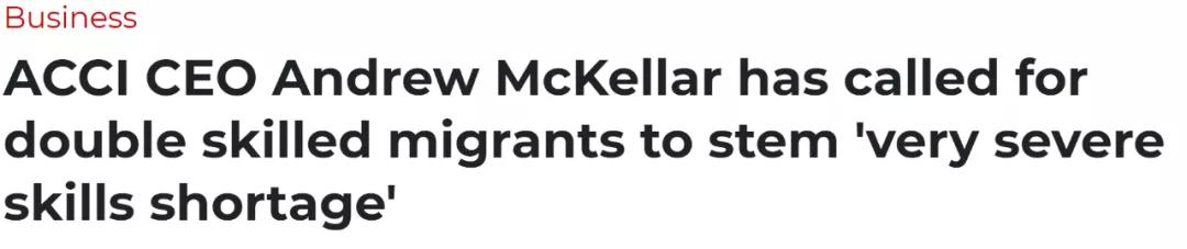 在新州州长表示澳洲5年内将需要200万移民来解决劳动力短缺并且刺激经济复苏之后,澳洲工商业联合会(ACCI)也向政府发出呼吁:未来五年将技术移民的年度配额提高一倍至20万人。