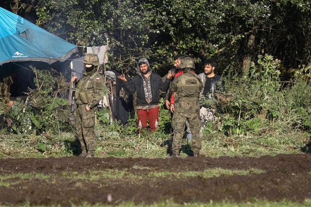 波兰士兵和试图越境的移民。图源:视觉中国