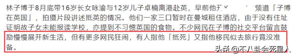 直到前两个月,媒体突然报道林子博带着一对子女移民英国。林子博自己的解释是,妻子离世之后他想完成妻子的意愿,好好养育两个孩子成才,移民国外也是为了更好地培养两个孩子。